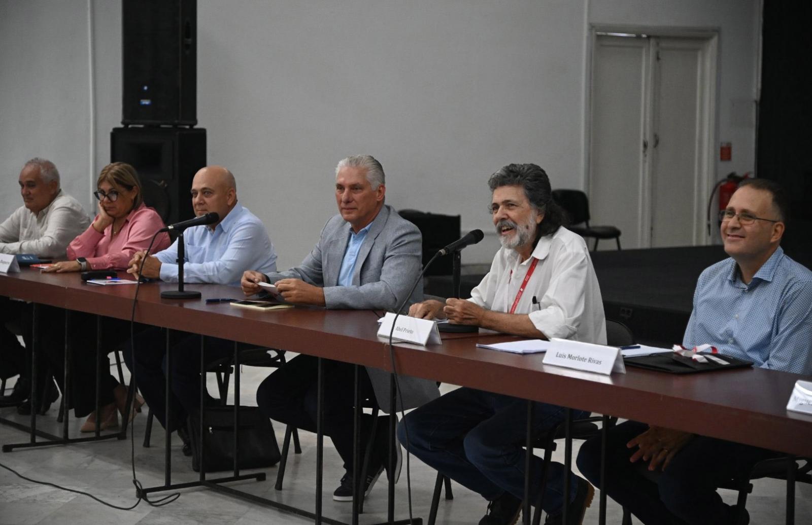 Miguel Díaz-Canel Bermúdez, Primer Secretario del Comité Central del Partido Comunista de Cuba y Presidente de la República, dialogó este jueves con intelectuales en la Casa de las Américas, en un encuentro que abrió una nueva etapa de la Red de Artistas e Intelectuales en Defensa de la Humanidad, precisó el diario Granma.