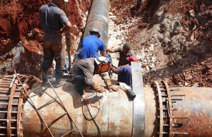 En momentos de la noche y la madrugada, fuerzas combinadas de entidades constructoras del Instituto Nacional de Recursos Hidráulicos (INRH), Aguas de La Habana, Cubana de Acero y EMCOR - Cupet trabajan sin descanso en el lugar para realizar la sustitución de este segundo tramo de la conductora.
